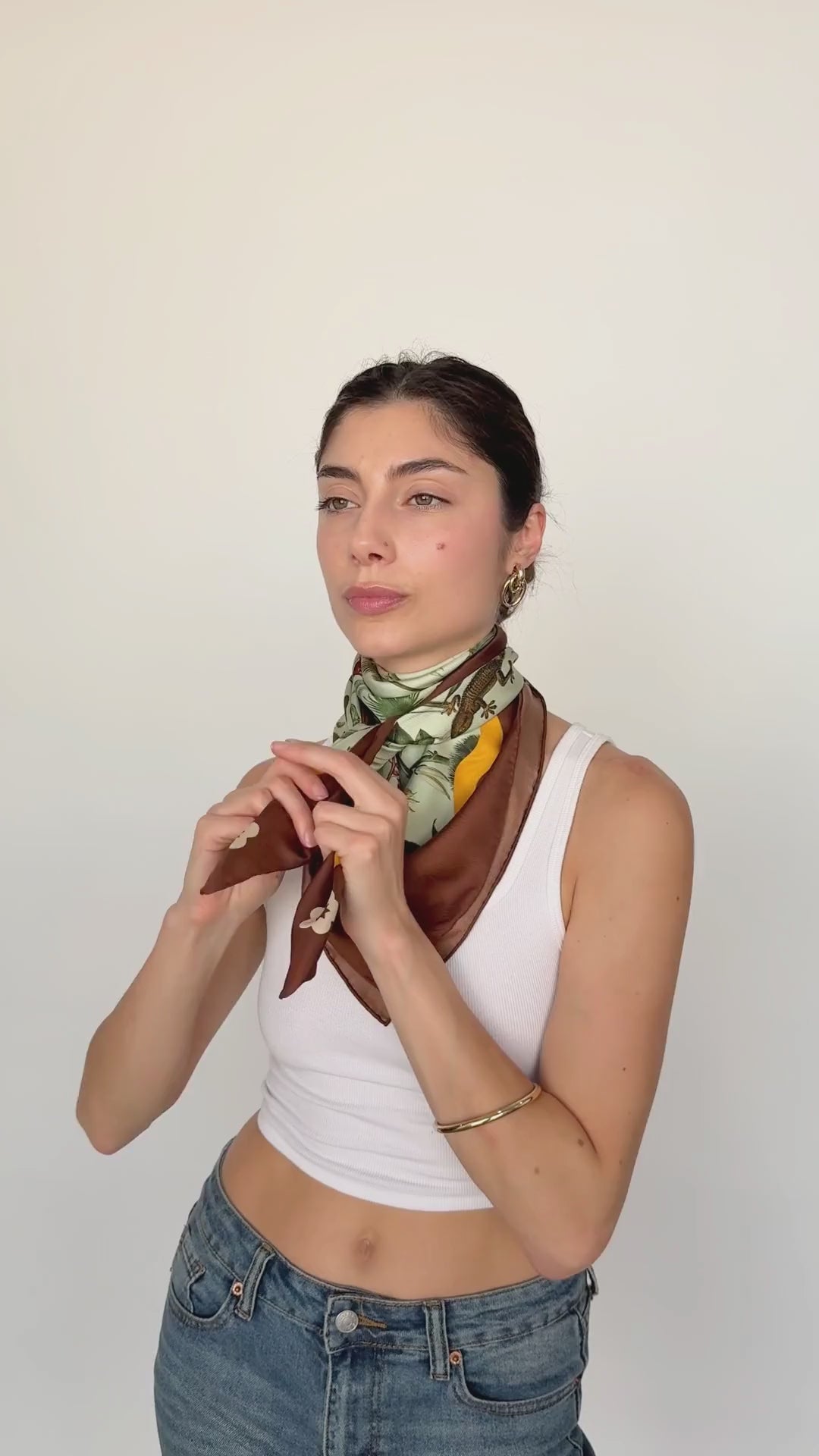 An elegant scarf in rich espresso brown, green, and pistachio hues. Made of 100% silk twill with hand-rolled edges, the print features lush palm trees, seashells, and tropical fauna lizards, monkeys, and birds. The on-trend brown tones make it a chic choice for accessorizing your handbag, hair, or neck.