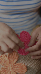 This bag is so striking with it's unique combination of papaya orange color, unusual shape, and striking 3D flowers. It is handmade by artisans in the Philippines from abacá, a fiber extracted from banana leaves. An eye-catching bag for your summer outfit.